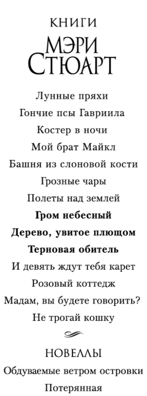 Гром небесный ; Дерево, увитое плющом ; Терновая обитель : романы / Мэри Стюарт ; пер. с англ. М. Юркан, М. Виноградовой, А. Максимовой. — СПб. : Азбука, Азбука-Аттикус, 2019. (The Big Book).
