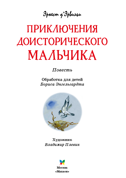 Приключения доисторического мальчика : повесть / Эрнест д’Эрвильи ; обработка для детей Б. Энгельгардта ; ил. В. Плевина. – М. : Махаон, Азбука-Аттикус, 2022. : ил. – (Яркая ленточка).
