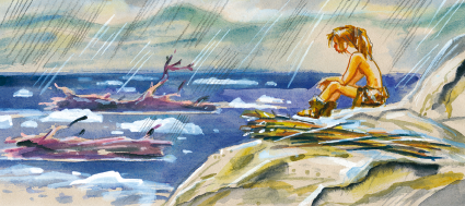 Старейший научил его вырезывать из раковин остриём кремнёвого осколка смертоносные крючки. При помощи самодельного гарпуна с зазубренным костяным наконечником Гель поражал даже громадных лососей.