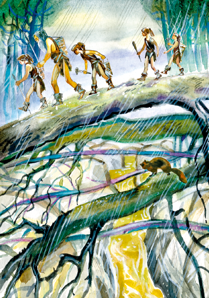 Они шли тихо, ступали легко и неслышно. Недаром старики постоянно твердили детям, что им надо привыкнуть двигаться бесшумно и осторожно, чтобы на охоте в лесу не спугнуть дичи, не попасть в когти диким зверям, не угодить в засаду к злым и коварным людям.