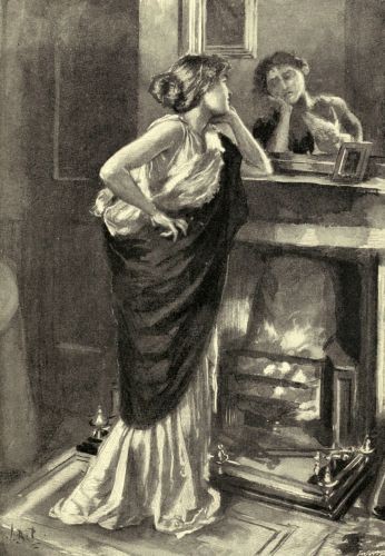 She was standing before the Low Chimney-glass, regarding herself intently