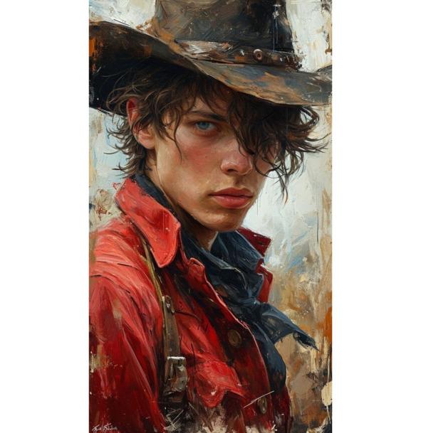 Это был молодой парень, лет семнадцати, весь в дорожной пыли. Плащ порван. Кажется, были даже дырки от пуль, хотя могло и показаться. Поношенная шляпа, старые, со стёртой подошвой, ботинки. Он с трудом стоял на ногах и смотрел по сторонам. Яркие чистые глаза с небесным оттенком затягивали её. Несколько едва заметных поворотов головы. Похоже он что-то искал.