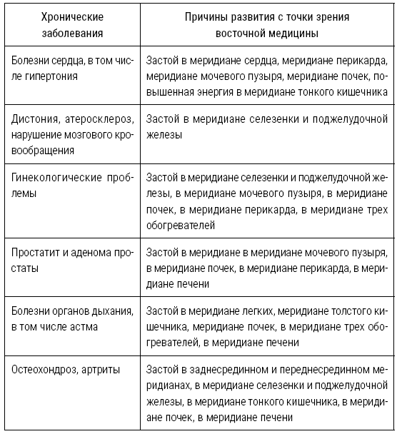 С помощью таблицы оценим причины возникновения некоторых болезней с точки зрения восточной медицины.