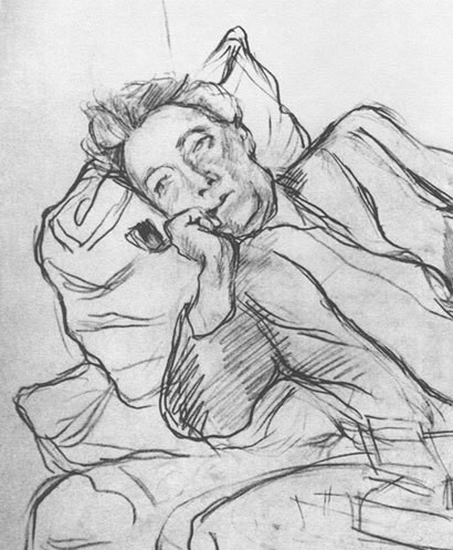 П. П. Кончаловский. Набросок к портрету В. Э. Мейерхольда (фрагмент). 1938. Дар М. П. Кончаловского Музею-квартире В. Э. Мейерхольда при ГЦТМ им. А. А. Бахрушина