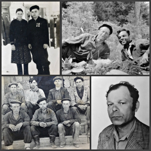 Нижний ряд: отец со своей бригадой, поселок Воронцовск; отец — портрет с Доски почета, г. Кемерово.