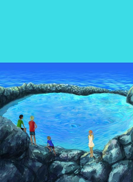 Купались они где-то минут двадцать, после чего внимательный Глеб обнаружил, что вода уже сильно опустилась, и предложил всем вылезать. Ящерка, занятая ловлей хохочущей Танечки, впервые посмотрела вверх и обнаружила, что воды убавилось почти вдвое — они находились будто бы в огромном фиолетово-голубом колодце с блестящими стен