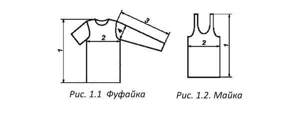 Из левого рисунка видно, что футболки и фуфайки – это один и тот же швейный продукт. Футболкой его называют при использовании в качестве спортивной или повседневной одежды, а фуфайкой – надевая в качестве нижнего белья.