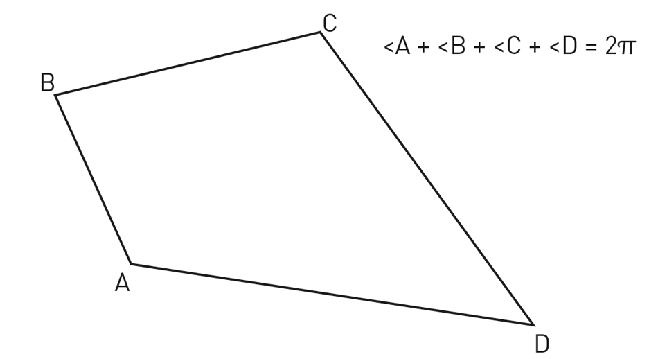 Таким образом, как только между элементами множества появляются некие связи, оно приобретает новые свойства. Так, соединив четыре точки отрезками, мы получили четырехугольник, у которого сумма внутренних углов равна 2π (рис. 2).