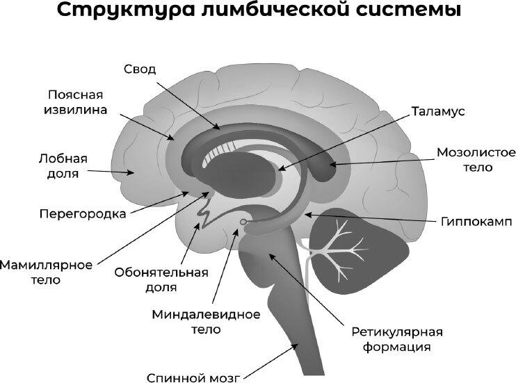 Лимбическая система – это комплекс структур в глубоких участках мозга, ответственных за регуляцию эмоций, памяти, мотивации и поведения. Она играет ключевую роль в формировании наших эмоциональных реакций (страх, гнев, радость, печаль и пр.) на окружающий мир.