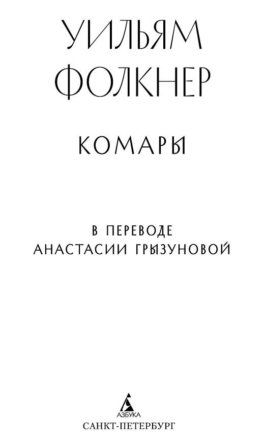 Комары : роман / Уильям Фолкнер ; пер. с англ. А. Грызуновой. — СПб. : Азбука, Издательство АЗБУКА, 2026. — (Большой роман).