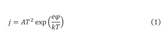 Further, from the calculations given, it is possible to determine the voltage, that is, the kinetic energy of the charges reaching the anode, from where their voltage (5) manifests itself, and since the value of the current density in the cathode itself (6) is known, depending on the ratio of this current density and the density of the outgoing charge, the percentage of charge output from the cathode can be found (7) or a kind of cathodic efficiency.