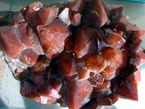 Рис. 2. Друза кристаллов кварца, окрашенных включениями. Волк-остров, Онежское озеро, Карелия, Россия. Кристаллы до 4 см. Образец: Мин. музей им. А. Е. Ферсмана РАН [184]