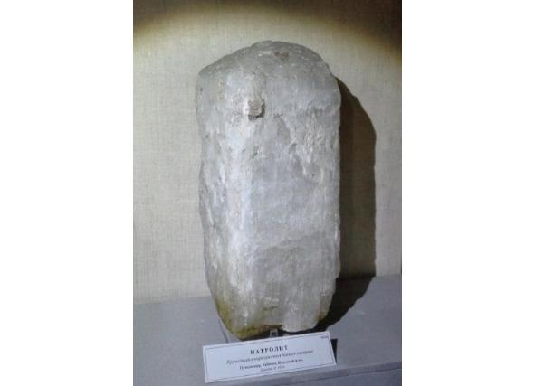 Рис. 5. Натролит. Путеличорр, Хибины, Кольский полуостров, Россия. «Крупнейший в мире кристалл данного минерала». Высота кристалла более 30 см. (№56544). Образец Мин. музей им. А. Е. Ферсмана РАН [191]