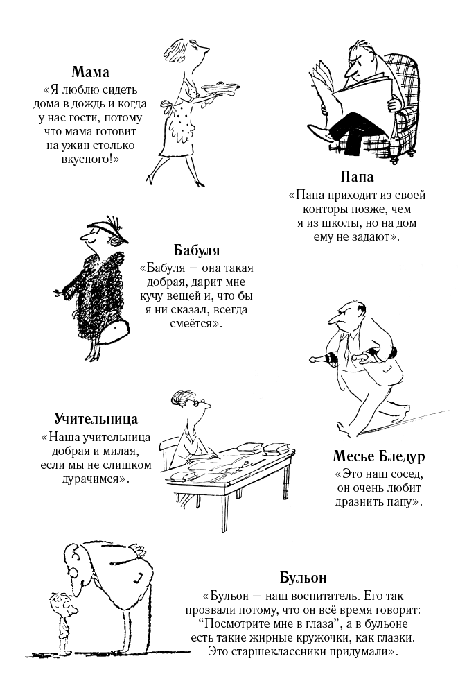 Мой отец и Жан-Жак Сампе описали тот мир, в котором дети смотрят на взрослых несколько иронично, но всегда с нежностью, а взрослые, когда дело доходит до них, в обычных, казалось бы, ситуациях часто ведут себя как существа незрелые!