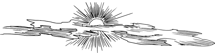 Светает все более. На востоке стоят почти неподвижно густые дальние облака, залегшие над горизонтом. Повыше плывут темные, но уже не такие тяжелые тучи, а под ними, клубясь и быстро скользя по направлению к югу несутся невысоко над землей отдельные клочки утреннего тумана. Эти три слоя облаков то сгущаются, заволакивая небо, то разрежаются, обещая кое-где просветы.