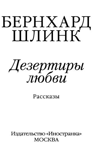 Дезертиры любви : рассказы / Бернхард Шлинк ; пер. с нем. Г. Ноткина, Б. Хлебникова. — М. : Иностранка, Азбука-Аттикус, 2019. (Большой роман).