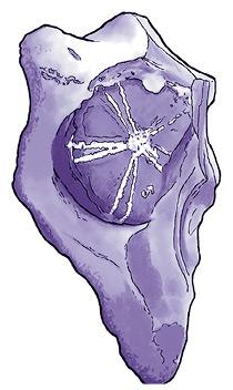 Изготовление топоров следовало определенным правилам. Заученными движениями мастера отбивали лишние куски от кремня и, как под копирку, делали одинаковые топоры. От традиции отступали нечасто. Одно такое исключение нашли в графстве Кент: топор, заостренный только с одной стороны. Стесать кремень по правилам помешала окаменелость — большой панцирь ископаемого ежа (Conulus). На панцире хорошо видна звезда: похожие есть на многих панцирях морских ежей, это следы амбулакральной системы, состоявшей из заполненных водой каналов, идущих к маленьким ножкам ежа.