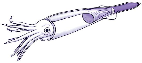 Белемниты — вымершие головоногие моллюски, внешне напоминавшие кальмаров. Они плавали в морях мезозойской эры и лишь ненадолго пережили динозавров. Внутри задней части их туловища находился твердый ростр, по форме как пуля. Он уравновешивал большую голову животного и обеспечивал ему нейтральную плавучесть.