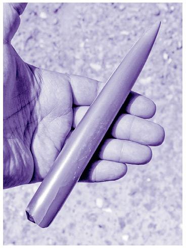 В том же карьере нашли два топора с остатками ископаемых кораллов. В отличие от кремня, который собирали в окрестностях, сланец принесли как минимум за сто километров. Сланец более хрупкий материал, чем кремень. Вряд ли сланцевыми топорами часто пользовались5, скорее всего, они декоративные. Их могли хранить как украшение, ради красивого узора окаменелостей, похожего на россыпь маленьких звездочек.