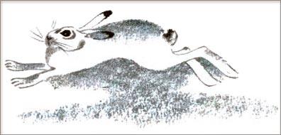 Заяц ходит ночью по полям без страха и прокладывает прямые следы; но как только приходит утро, враги его просыпаются: заяц начинает слышать то лай собак, то визг саней, то голоса мужиков, то треск волка по лесу, и начинает от страза метаться из стороны в сторону. Проскачет вперед, испугается чего-нибудь и побежит назад о своему следу. Еще услышит что-нибудь — и со всего размаха рыгнет в сторону и поскачет прочь от прежнего следа. Опять стукнет что-нибудь — опять заяц повернется назад и опять поскачет в сторону. Когда светло станет, он ляжет.