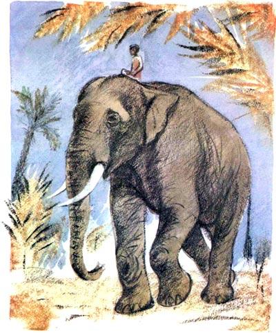 Слон посмотрел на детей, взял хоботом старшего, потихоньку поднял и посадил себе не шею. И слон стал слушаться этого мальчика и работать для него.