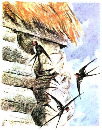 Ласточки недаром подлетали: они приносили каждая в клювике грязь и понемногу замазывали отверстие гнезда.