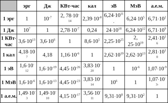 Соотношения между энергетическими единицами