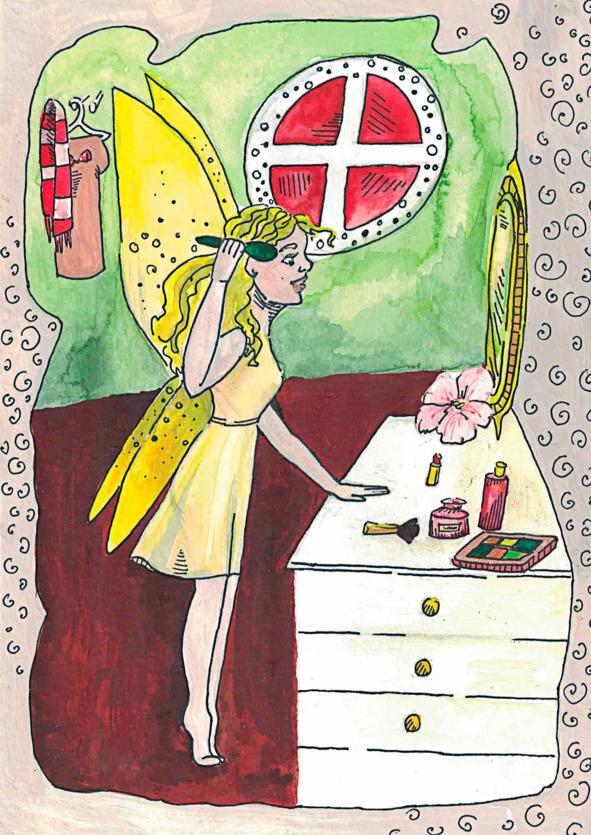 Вот и наша Маленькая Фея открыла глазки, расправила крылышки и выглянула в окошко. «Сегодня будет самый лучший день в моей жизни!» — подумала Маленькая Фея. Она подлетела к зеркалу, и, ещё тщательнее чем обычно, расхвалила саму себя.