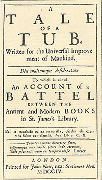Первое издание памфлета Свифта Сказка бочки (A Tale of a Tub, 1704)