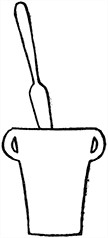 Japhet, who is taken in hand and apprenticed to the worthy practitioner, describes the shop looking upon Smithfield Market, with its usual allowance of green, yellow, and blue bottles. All the patent medicines in the known world were kept in stock, even to the all-sufficient medicine for mankind of Mr. Euony. The shop was large, and at the back part there was a most capacious iron mortar with a pestle to correspond.