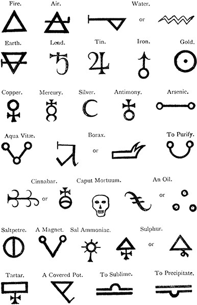 - Origin of the term chemistry—Practice of the hermetic science by the Egyptians—Al-Chindus—Geber—Rhazes—Merlin—St. Dunstan—Albertus Magnus—Vincent de Beauvais—Raymond Lulli—Arnauld de Villeneuve—Roger Bacon—Antonio Quainer—Discoveries made by the early alchemists—Eck—John Baptist Porta—Cornelius Agrippa—Dr. Dee—Symbols of the alchemists pages 47-63