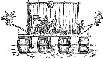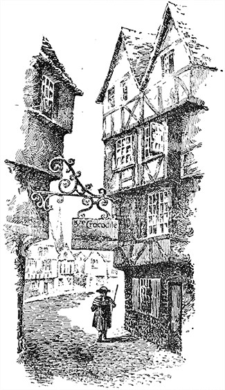The proprietor himself, we are told, might have been forty-five years of age. “He was of middle height, his face was thin, his nose very much hooked, his eyes small and piercing, with a good-humoured twinkle in them. His mouth was large and drawn down at one corner. He was stout in his body, and carried a considerable protuberance before him, which he was in the habit of patting with his left hand complacently. But although stout in his body, his legs were mere spindles, so that in his appearance he reminded you of some bird of the crane genus.
