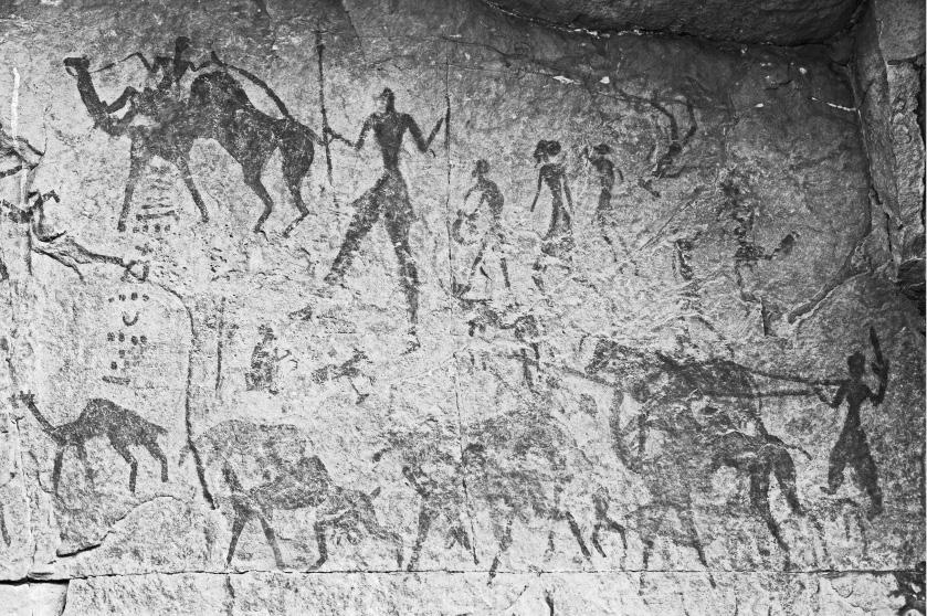 «Допустынная Сахара»: так специалист по доисторическим временам Анри Юго назвал следы африканской культуры, найденные на наскальных рисунках в пещерах плато Тассилин-Аджер и нагорья Ахаггар на юго-востоке Алжира, на границе с Ливией и Нигерией. На рисунках можно увидеть изображенные чаще всего охрой сельские пейзажи и разнообразный домашний скот, пасущийся там, где сегодня выживают только верблюды.