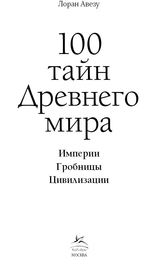 100 тайн Древнего мира. Империи. Гробницы. Цивилизации / Лоран Авезу ; [пер. с французского А.В. Жигаловой]. — М . : КоЛибри, Азбука-Аттикус, 2025 ; ил.