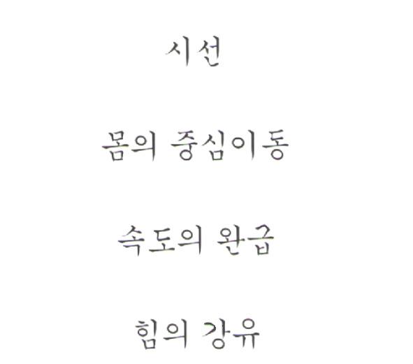 Приведу и 17 принципов правильного исполнения пхумсэ, сформированных представителем Сонгмукван, учеником мастера Ро Бён Джик, мастером Ким Су, создавшим позднее отдельное направление — Чаёнрю: