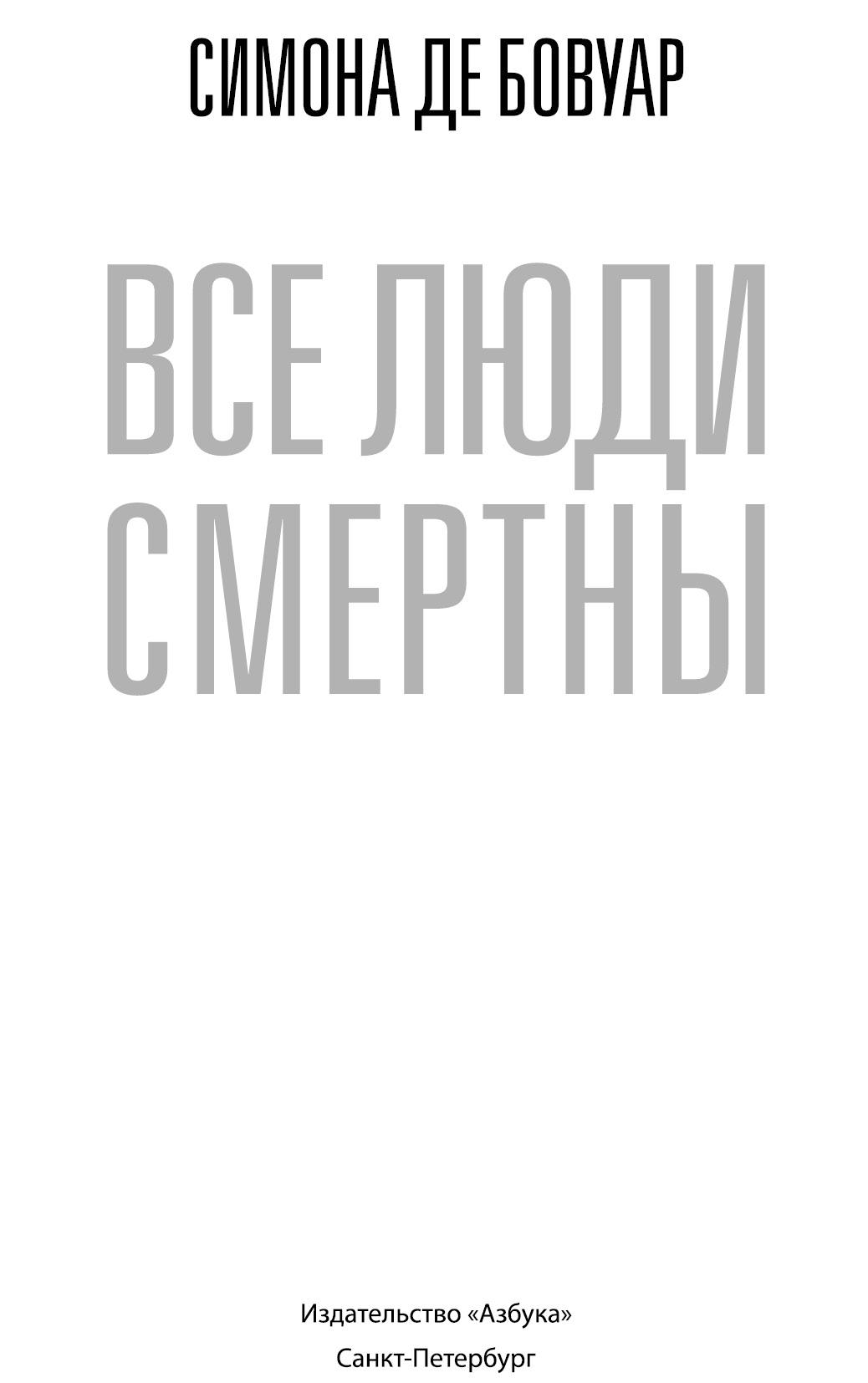 Все люди смертны : роман / Симона де Бовуар ; пер. с фр. Е. Березиной, Г. Соловьевой. — СПб. : Азбука, Издательство АЗБУКА, 2025. — (Большой роман).