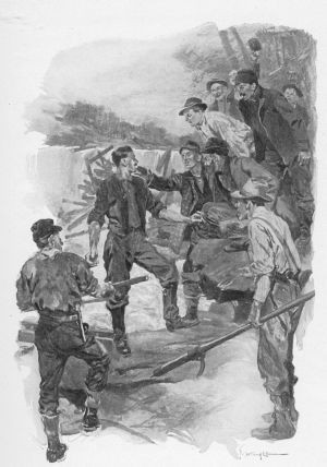 After feasting his eyes and filling his heart with a morning draught of beauty, Stephen went in from the porch and, pausing at the stairway, called in stentorian tones: “Get up and eat your breakfast, Rufus! The boys will be picking the side jams to-day, and I’m going down to work on the logs. If you come along, bring your own pick-pole and peavey.” Then, going to the kitchen pantry, he collected, from the various shelves, a pitcher of milk, a loaf of bread, half an apple-pie, and a bowl of blueberries, and, with the easy methods of a household unswayed by feminine rule, moved toward a seat under an apple-tree and took his morning meal in great apparent content. Having finished, and washed his dishes with much more thoroughness than is common to unsuperintended man, and having given Rufus the second call to breakfast with the vigor and acrimony that usually marks that unpleasant performance, he strode to a high point on the river-bank and, shading his eyes with his hand, gazed steadily down stream.