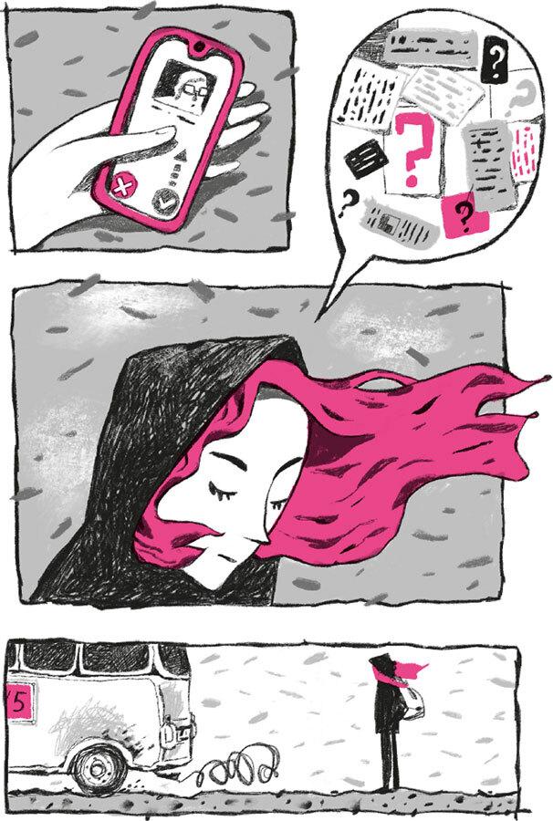 Когда автобус поворачивал на Вокзальную, Лера взглядом из-под капюшона выхватила тетин силуэт и сразу же достала из кармана смартфон. Пальцы исполнили на экране быстрый эксцентричный танец, а потом с помощью булавки-розочки (в ларьке у калининградского музея она называлась «булавкой на удачу») вытащили сим-карту и швырнули ее в открытую форточку. Симка ударилась об асфальт, подскочила, как испуганный кузнечик, улетела в газон и замерла среди травы.