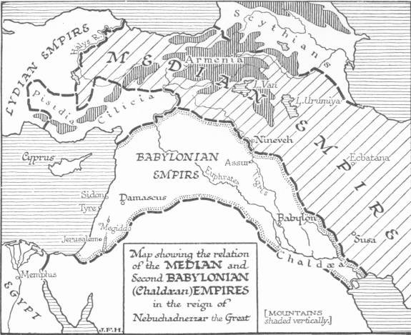From the days when the Aryan hordes first broke in upon the ancient civilizations, it was inevitable that the old gods of the temples and priesthoods should suffer great adaptations or disappear. In the course of hundreds of generations the agricultural peoples of the brunette civilizations had shaped their lives and thoughts to the temple-centred life. Observances and the fear of disturbed routines, sacrifices and mysteries, dominated their minds. Their gods seem monstrous and illogical to our modern minds because we belong to an Aryanized world, but to these older peoples these deities had the immediate conviction and vividness of things seen in an intense dream. The conquest of one city state by another in Sumeria or early Egypt meant a change or a renaming of gods or goddesses, but left the shape and spirit of the worship intact. There was no change in its general character. The figures in the dream changed, but the dream went on and it was the same sort of dream. And the early Semitic conquerors were sufficiently akin in spirit to the Sumerians to take over the religion of the Mesopotamian civilization they subjugated without any profound alteration. Egypt was never indeed subjugated to the extent of a religious revolution. Under the Ptolemies and under the Cæsars, her temples and altars and priesthoods remained essentially Egyptian.