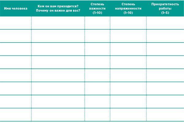 4. Наконец, упорядочьте список в соответствии с тем, насколько сильно вы желаете работать над улучшением тех или иных отношений (где 1 = «самые приоритетные отношения»).