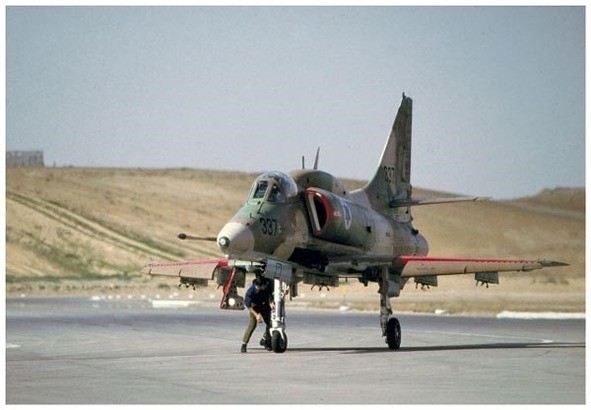 [2] А4 Skyhawk – лёгкий дозвуковой одномоторный штурмовик-бомбардировщик американского производства с грузоподъёмностью в 4 тонны. Разрабатывался в начале 50-х для работы с авианосцев. Состоял на службе ВВС Израиля с 1969 и до конца 2015 года.