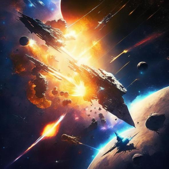 Звено, следуя команде, прижимается к ведущему, образуя этакий небольшой смертоносный рой. Накачанные энергией двигатели ревут на пределе мощности, и мы несёмся к месту назначения, легко пожирая пространство. Пока ещё далекий хаотичный танец едва заметных искр некоторое время не представляется опасным. Однако, по мере приближения, невесомые проблески приобретают форму, начинают проявляться короткие росчерки разрядов, пылающие штрихи покуда невидимых из-за расстояния ракет, голубые пульсации защитных куполов. А с какого-то мгновения силуэты космических кораблей стремительно разрастаются до гигантских размеров. Наши истребители неудержимо несутся в самую гущу жестокой бойни, откуда доносятся призывы о помощи — транспортный караван, шедший навстречу эскадре, попал в засаду и теперь принимает героическую смерть.