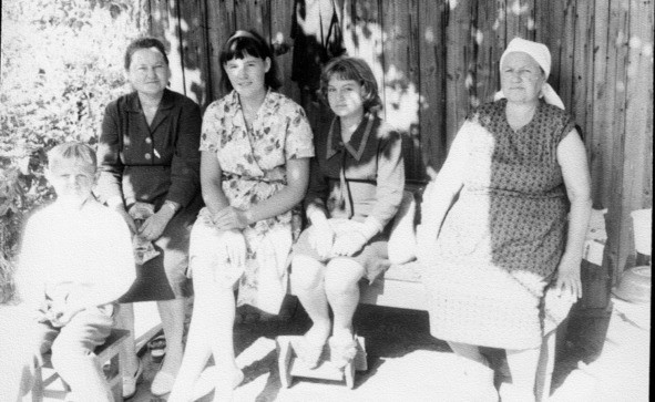 Сестра Валентина с детьми Людой и Вовой, мамой Матрёной Кирилловной и моей супругой Фаиной. Фото автора