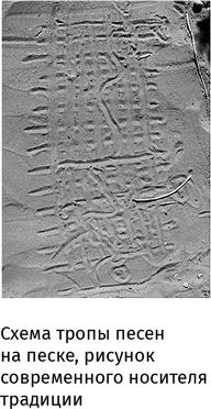 В культуре австралийцев это не так: тропа песен — географический маршрут. Но это и путь в мире сновидений, и миф, который сам рассказывает свою историю. Урок мифологии одновременно оказывается уроком географии, и, когда австралийские матери поют песни своим детям, они подчас одновременно чертят на земле линии, рисуют своего рода карты мифов. Позже, когда уже взрослый абориген идет по заученному в детстве маршруту, миф сопровождает его на каждом шагу.