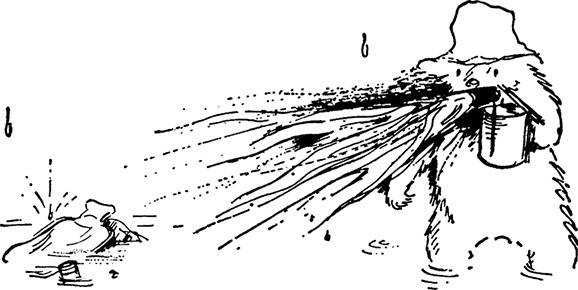 Паддингтон попытался было согнать всю воду на полу в одно место, но вода по большей части попадала к нему на мех, и скоро он вымок по самые уши.