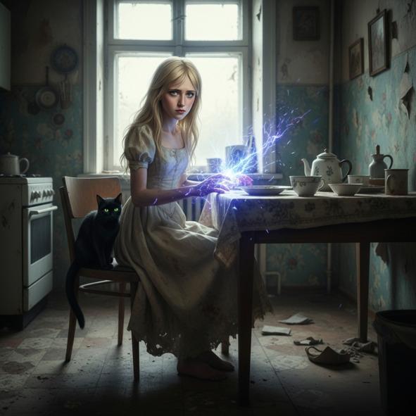 «Что это? Какая-то магия движения?» — мысленно вскрикнула я, обращаясь к коту. «Никакой магии. Механика и электричество, принцесса», — донёсся до меня голос Бастета. Стальной червь остановился, его бока разъехались, и толпа хлынула внутрь. Меня буквально внесли в вагон. Поезд дёрнулся и понёсся по тёмному тоннелю. За окном проносились лишь редкие огни. Скорость была поразительной. Конечно, это не мгновенный перенос через портал, но для путешествия без единого заклинания… это было невероятно. Я смотрела на безразличные лица пассажиров: они читали книги, смотрели в светящиеся прямоугольники в своих руках, спали. Для них это чудо было обыденностью. Я поражалась мощи этого мира. Мощи, которая не зависела от дара богов или крови предков. Это была мощь разума, заключённая в металл и провода. И это одновременно восхищало и пугало. Наконец мы снова выбрались на поверхность, в серый и унылый район, состоящий из одинаковых высоких домов-коробок.