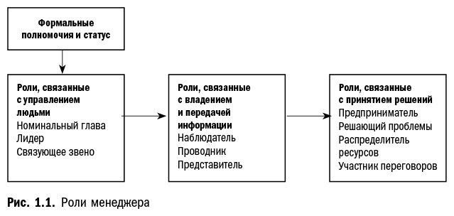 1. Первая роль — роль номинального главы. В силу своего положения — руководителя организационного подразделения — каждый менеджер обязан выполнять определенные обязанности церемониального характера. Президент корпорации встречает и приветствует высоких гостей, бригадир идет на свадьбу токаря из своей бригады, а руководитель отдела сбыта приглашает на обед важного клиента.