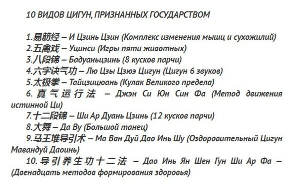 Однако официально признаны государством и повсеместно поддерживаются следующие комплексы цигун: