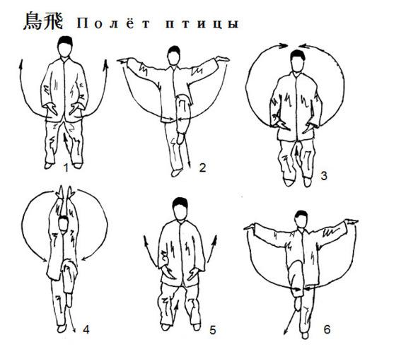 Для иллюстрации приведу одну из форм журавля — «Летящий журавль» или «Полёт птицы».