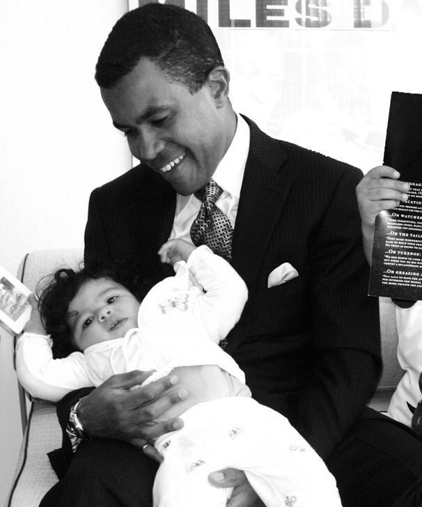 Один из снимков, сделанных моей женой для конкурса журнала Esquire «Самый хорошо одетый реальный мужчина». Наш сын Коул стоит справа и читает журнал. Наша дочь Элла вертится у меня на коленях, добиваясь, чтобы мать взяла ее на руки
